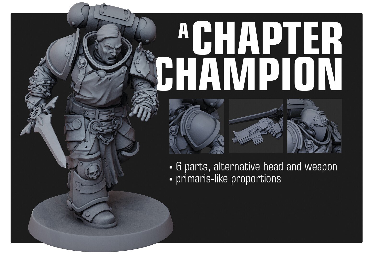 HQ resin miniature in Primaris scale with 40mm base.
