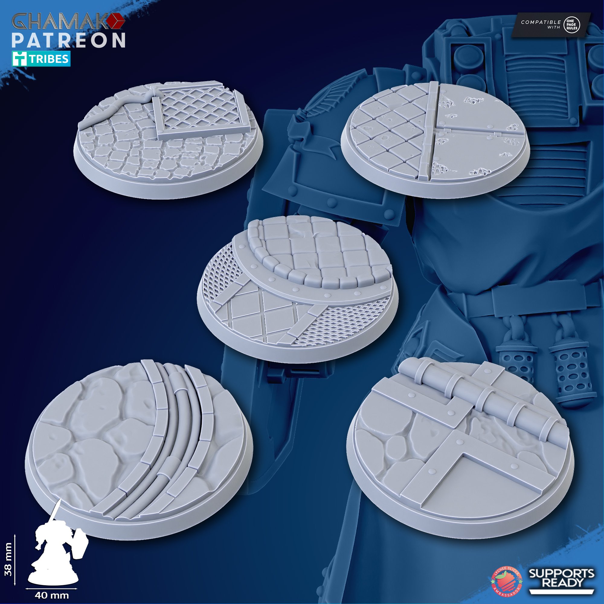 – 5 Round bases 40 mm;