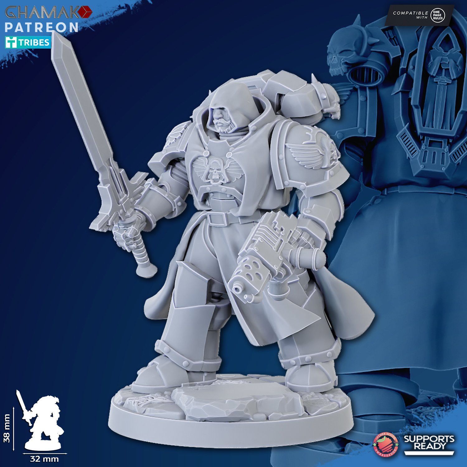 HQ resin miniature in Primaris scale with 32mm Scenic bases.